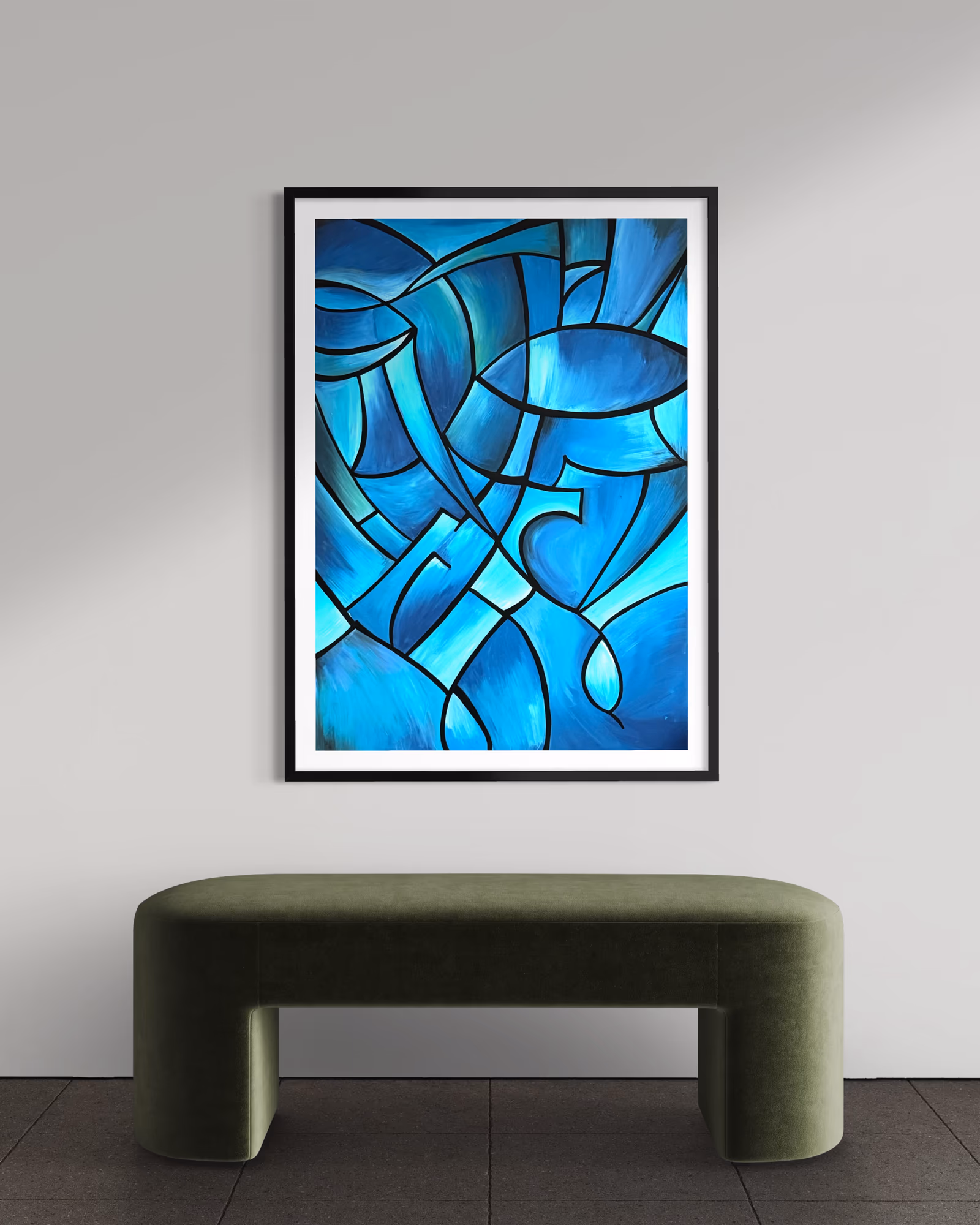canvas üzerine akrilik tablo. Kübizmin çizgileri modern maviliklerle baş kaldırıyor.